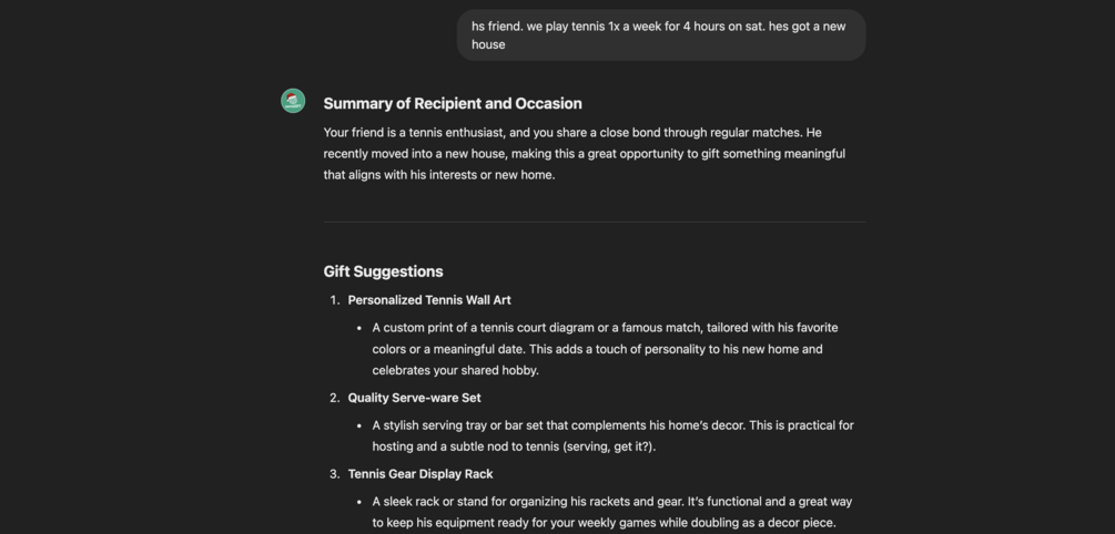- Personalized to Perfection: Every suggestion is tailored to the recipient, ensuring the gift feels meaningful and truly special.